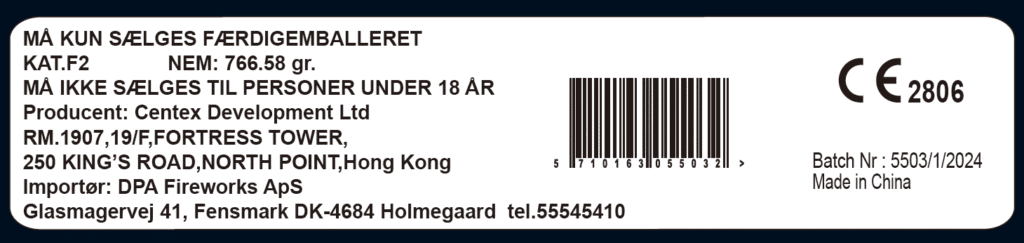 Placer fyrværkeriet på en plan, hård flade, hvor indhold frit kan stryge til vejrs